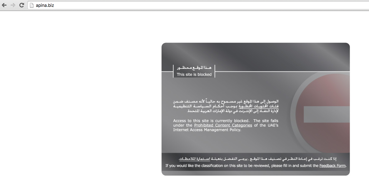 Islamilla on merkittävä vaikutus maan kulttuurin, ja tästä esimerkkinä on verkkoyhteyksien valvonta. Moniin palveluihin ja sisältöön pääsy on estetty juurikin tästä syystä, joten etätyötä tekevän kannattaa varautua hyvällä VPN-yhteydellä tai jopa -yhteyksillä kotimaahansa. Ohessa esimerkki suositun apina.biz-sivuston käytön estosta.